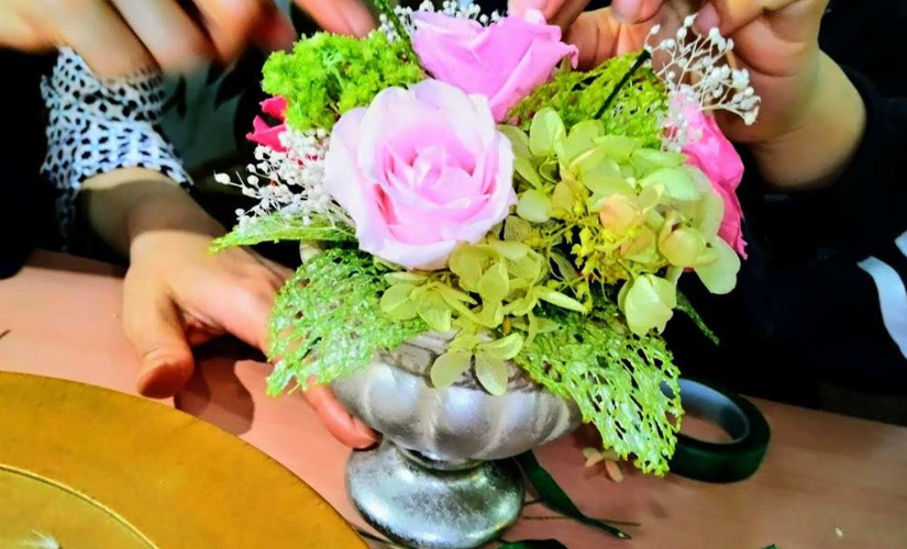 当教室では、個人向けレッスン はもちろんのこと、企業様・病院・学校・幼稚園・老人ホーム・店舗 などへの出張レッスンや、フラワーアレンジメント・プリザーブドフラワーの制作依頼も承っております。